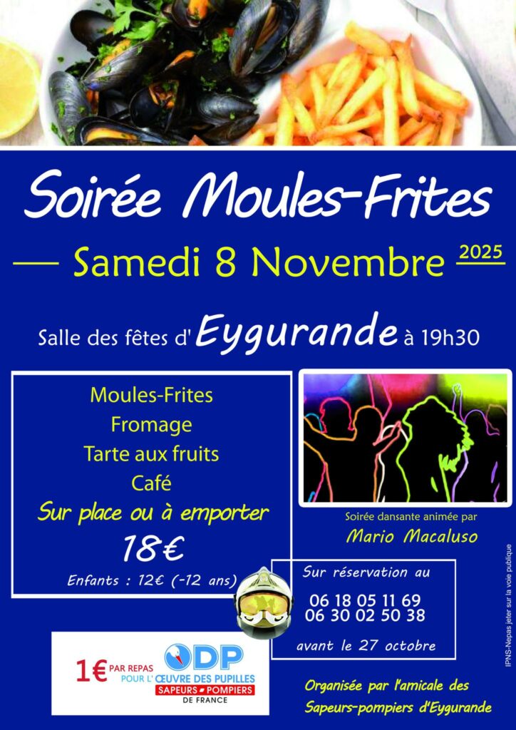 Animations localesSoirée Moules-Frites organisé par l’Amicale des Sapeurs-Pompiers d’Eygurande.